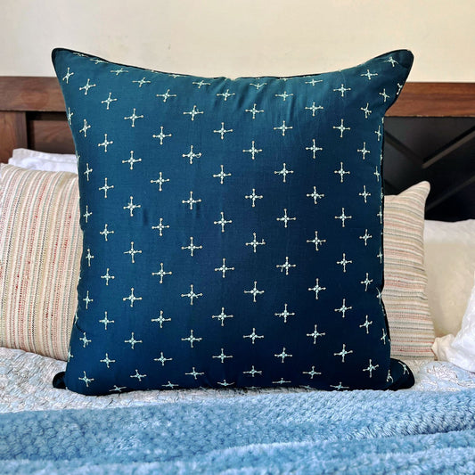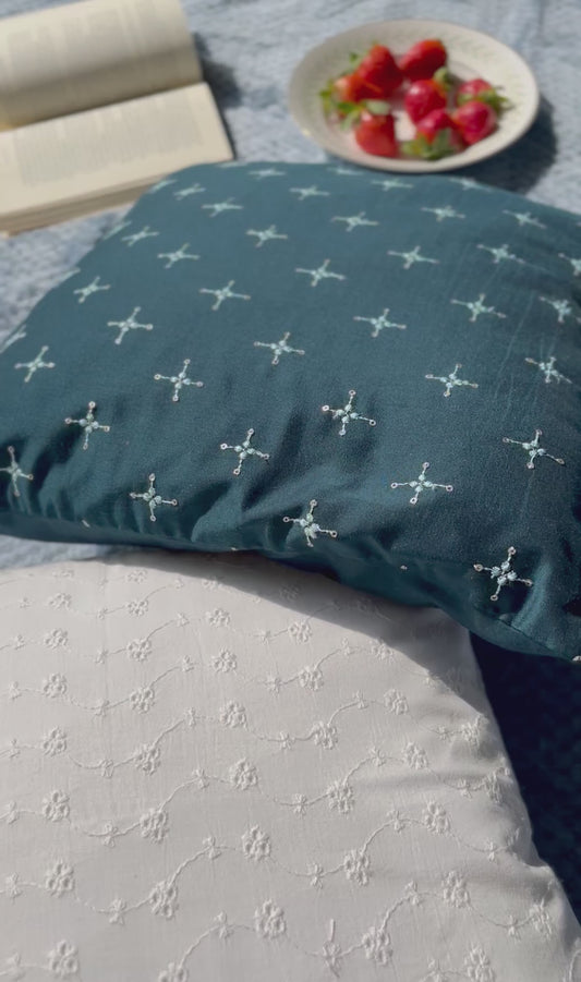 Woodland Whispers - Bluish Green Embroidered Cushion Cover
