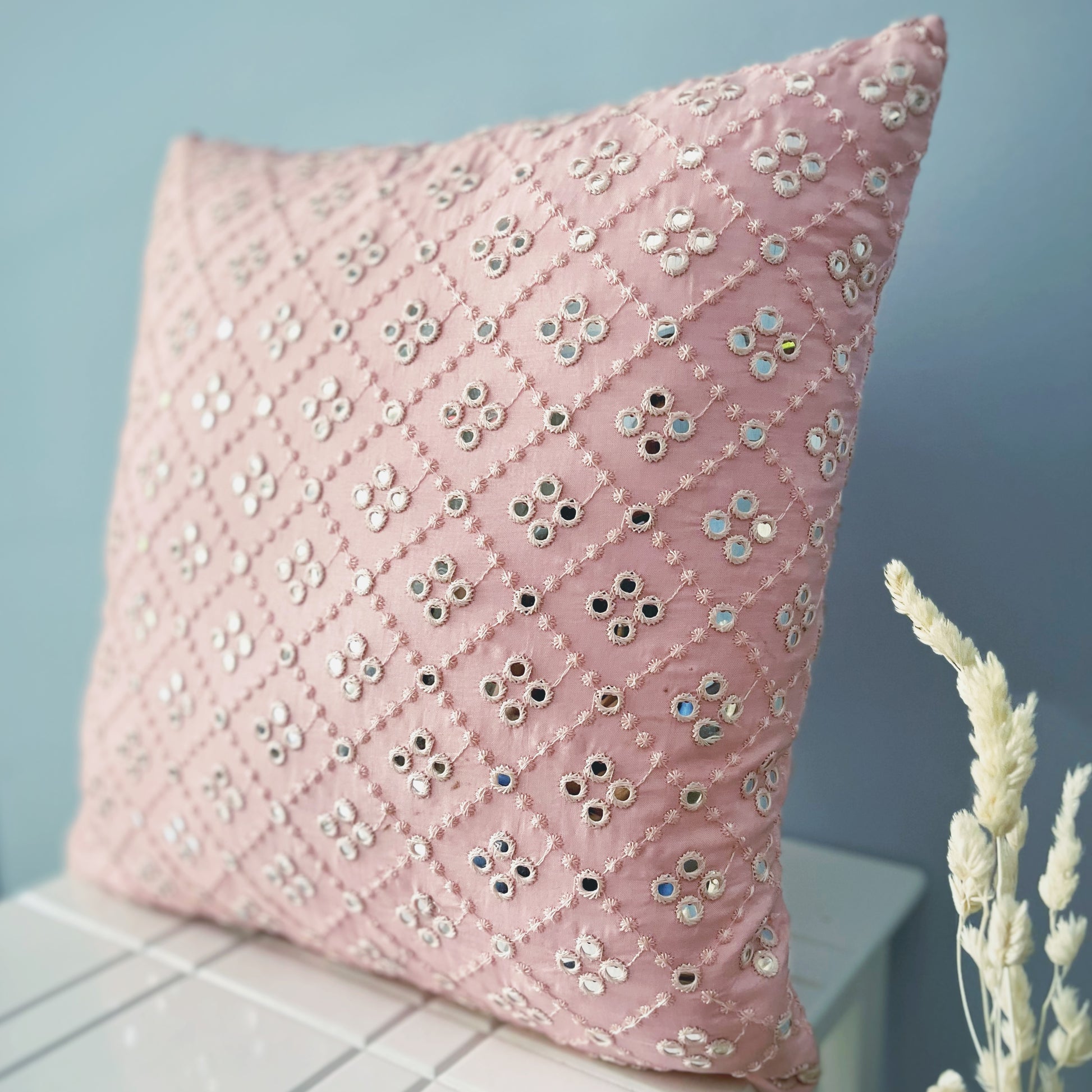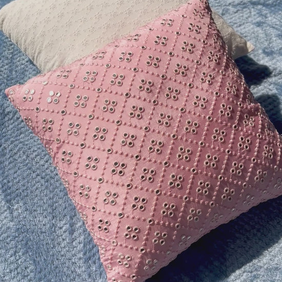 Pretty in Pink - Mirror Work Cushion Cover (Uppada Silk)